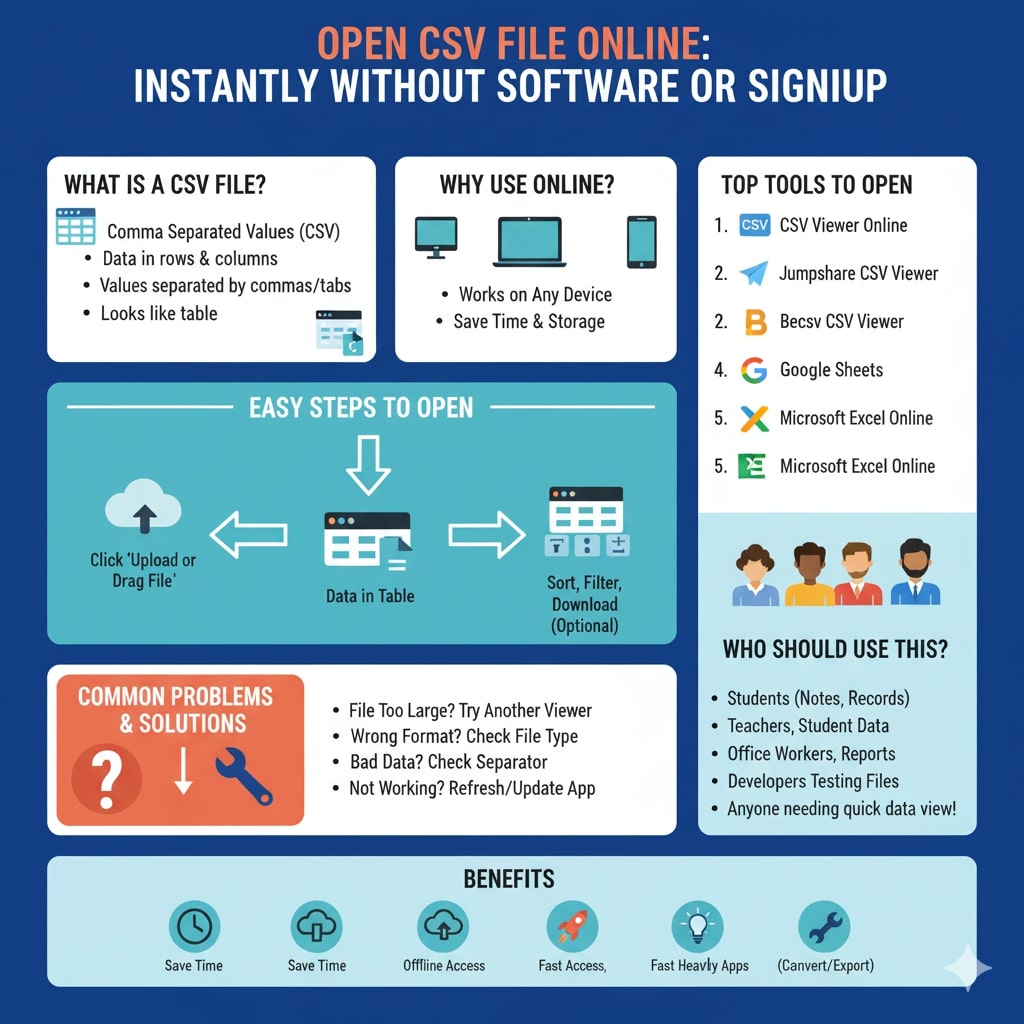 I think many people get confused when they see a CSV file. That is when I searched for ways to open CSV files online. You are going to learn how to do that in a simple way. If you are a student, a teacher or someone who works with data, you should know how to open CSV file online . We will explore tools, steps and solutions together. Let us begin and make this easy for everyone.